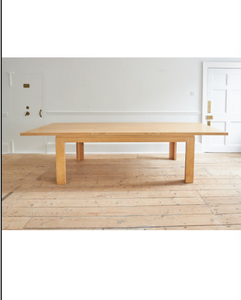 A French oak extending table with L-shaped legs, fully closed table measures 200 cm long; can be made in other sizes and finishes. W100 x L299 x H80