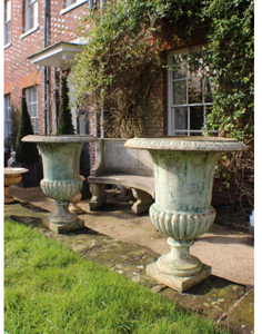 With fluted lower body and everted rim with acanthus motif, on square section base. H75