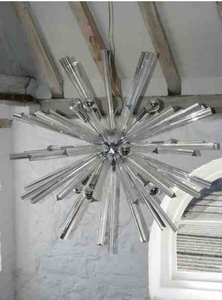 An Italian glass and chrome 'sputnik' chandelier, circa 1970s spherical with radial cylindrical section branches. W100 x H100