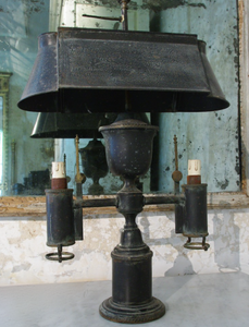 A 20th century French Directoire style tole lamp (fully electrified) W42 x H66