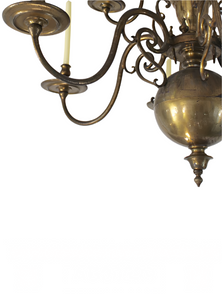 A large Dutch brass two-tier chandelier, circa 1900 the central shaft with baluster and globular sections, with candle sconce. W117 x D117 x H178.