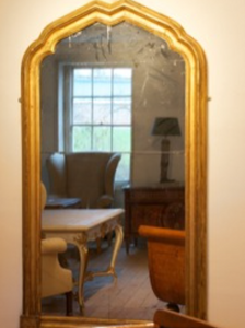 A French gilt wood mirror with Gothic influence, mid 19th Century. W103 x H181
