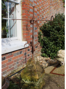 A French cast iron and stone weather vane, 19th Century on tapering stone base, the iron with scroll detail. W28 x H118