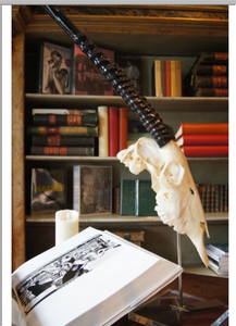 A Gemsbok skull detachable horns, mounted on a perspex stand W104 x H104 AB01385
