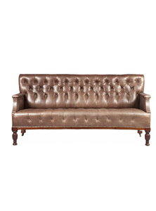 A George IV leather club sofa, early 19th Century with straight back and arms, turned wood legs, upholstered in dark brown leather, button and stud detail. W194 x H98 x D74 and weight 65kgs.