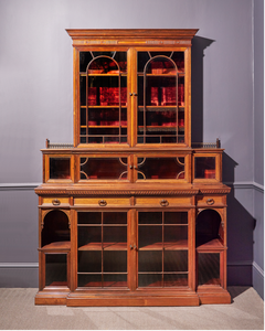 A late 19th Century rosewood breakfront bookcase cabinet by Howard & Son Berners Street, London with an arrangement of bevelled glass astragal glazed cupboards.