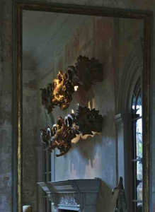 A French Louis XVI style carved and painted gilt wood mirror, original plates, grey paint.