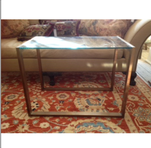 Pair of Italian Brass and glass rectangular, side tables with plain glass top. L55 X W75 X H55 AB01286