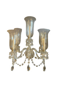 A pair of fine Victorian cut-glass wall lights, 19th Century each with five lights, silver plated bases, arms and fittings, the scrolling arms each fitted with a glass lamp shade, wired for electricity