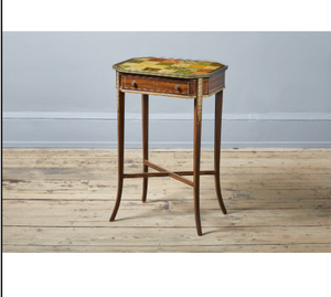 A rare Regency gilt mounted occasional table with painted top, circa 1790-1810 L50 x D37 x H76.50