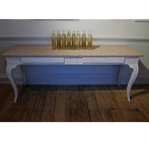 A commissioned painted Swedish Gustavian 1774 style double drawer console with a painted wooden top. W188 x D64 x H76