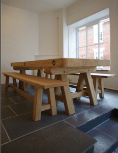 A French Oak Trestle Table with trestle supports, with or without exposed bolts, can be made in other sizes and a range of finishes, from £7200. L350 x D350 x H78 x W120.