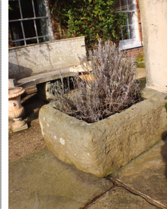 Two English antique stone troughs rectangular, slightly tapering sides, one slightly smaller (52 x 39 x 27) AB01024